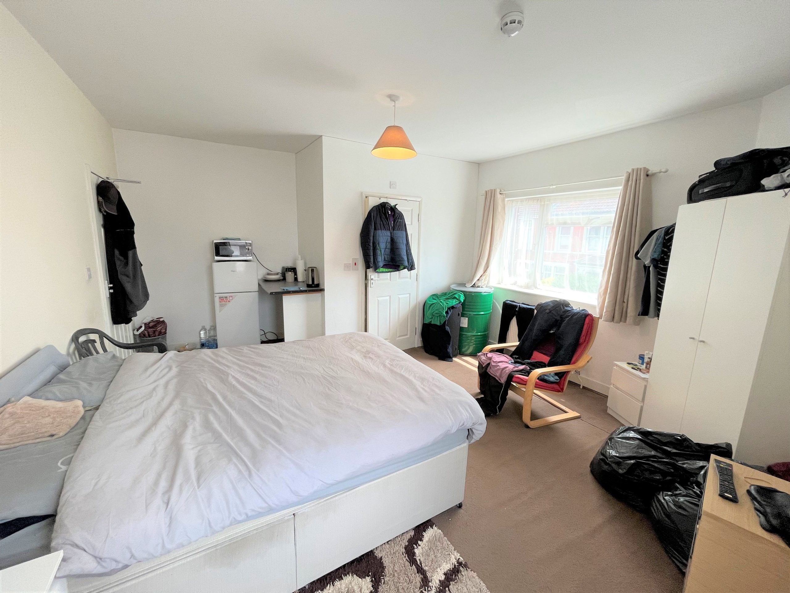 A spacious double ensuite room with kitchenette arear on the first floor offered fully furnished. The house has a shared communal lounge/kitchenette with appliances and a further second kitchen with appliances.